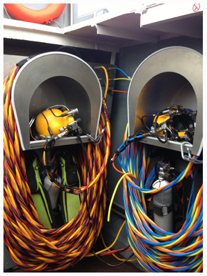 De Tigris beschikt over verschillende materialen voor allerlei werkzaamheden. Voor duikwerkzaamheden hebben wij de volgende apparatuur standaard aan boord: