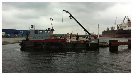 Het afzinken van het 20.000 ton zwaar wegende tunnelelement voor de Noord-Zuidlijn in het hartje van Amsterdam is een uniek project. Het werkschip 'Tigris' was als Diving Support Vessel nauw betrokken bij het voorbereidende werk.